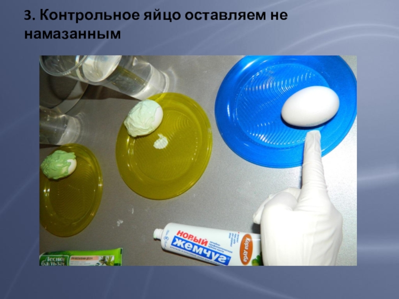 Слайд 73. Контрольное яйцо оставляем не намазанным