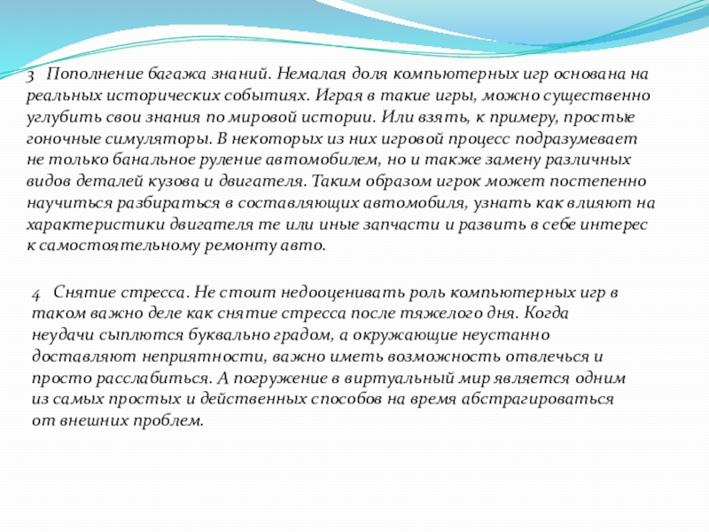Слайд 143 Пополнение багажа знаний. Немалая доля компьютерных игр основана на