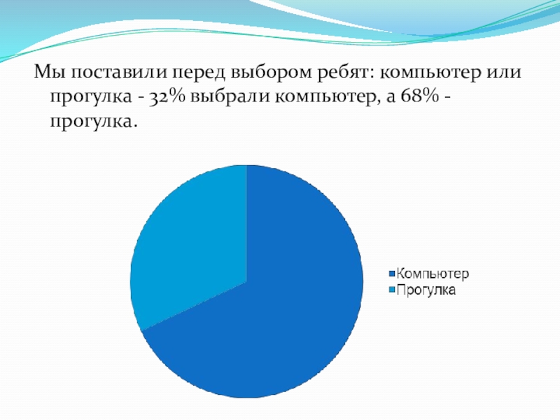 Слайд 17Мы поставили перед выбором ребят: компьютер или прогулка - 32% выбрали