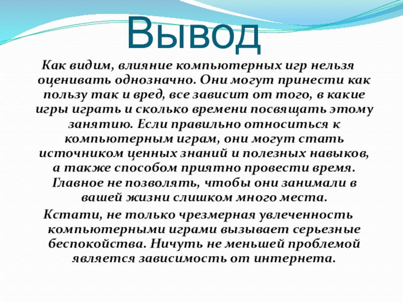 Как видим, влияние компьютерных игр нельзя оценивать однозначно. Они могут принести