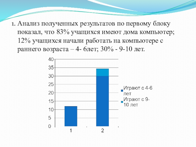 Слайд 161. Анализ полученных результатов по первому блоку показал, что 83% учащихся