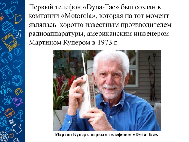 Мартин Купер с первым телефоном «Dyna-Tac».