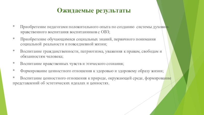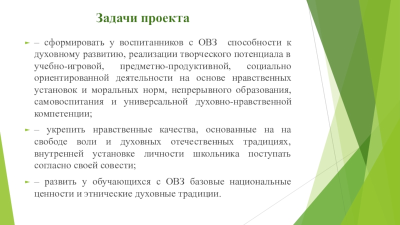 – сформировать у воспитанников с ОВЗ способности к духовному развитию,