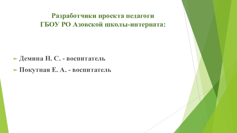 Слайд 2Разработчики проекта педагоги