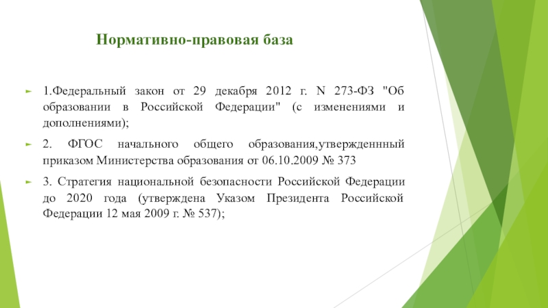 1.Федеральный закон от 29 декабря 2012 г. N 273-ФЗ "Об