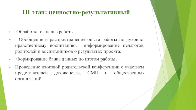 Слайд 15III этап: ценностно-результативный