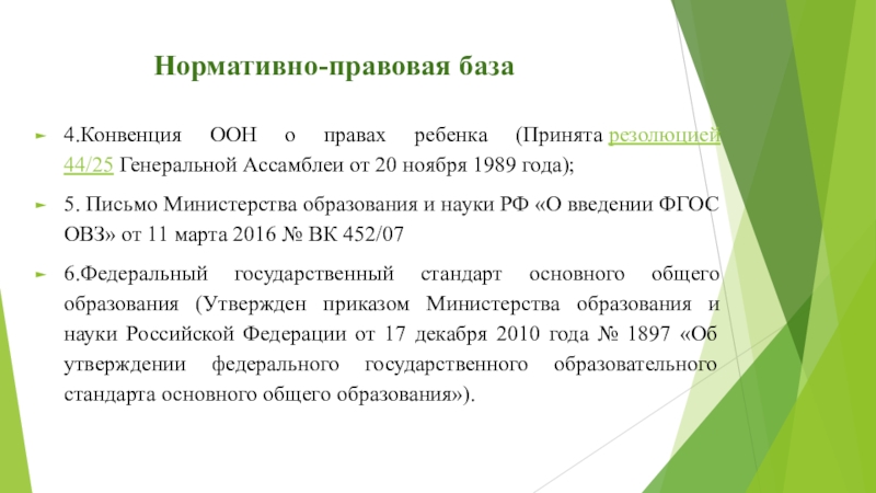 5. Письмо Министерства образования и науки РФ «О введении ФГОС ОВЗ» от 11 марта 2016 № ВК 452/07