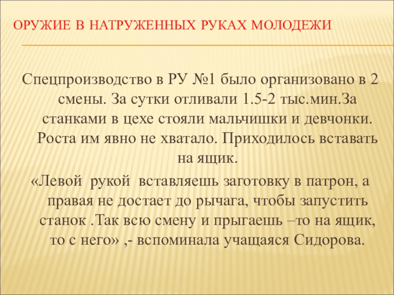ОРУЖИЕ В НАТРУЖЕННЫХ РУКАХ МОЛОДЕЖИ