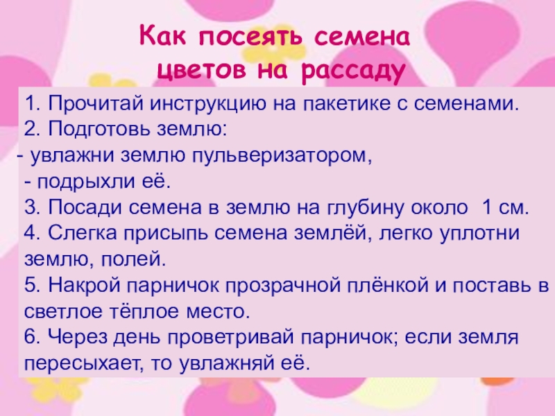 4. Слегка присыпь семена землёй, легко уплотни землю, полей.