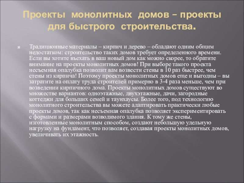 Слайд 12Проекты монолитных домов – проекты для быстрого строительства.