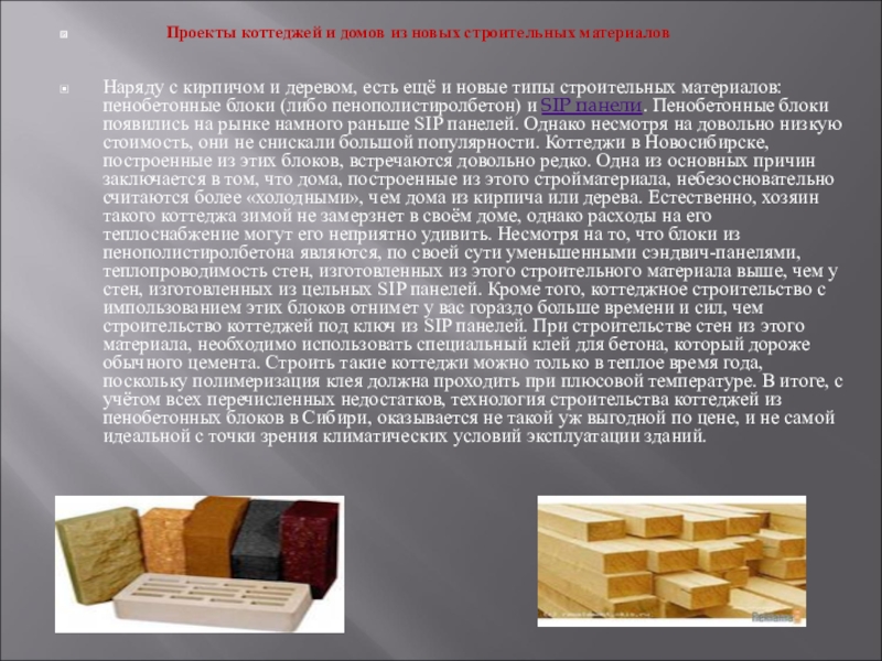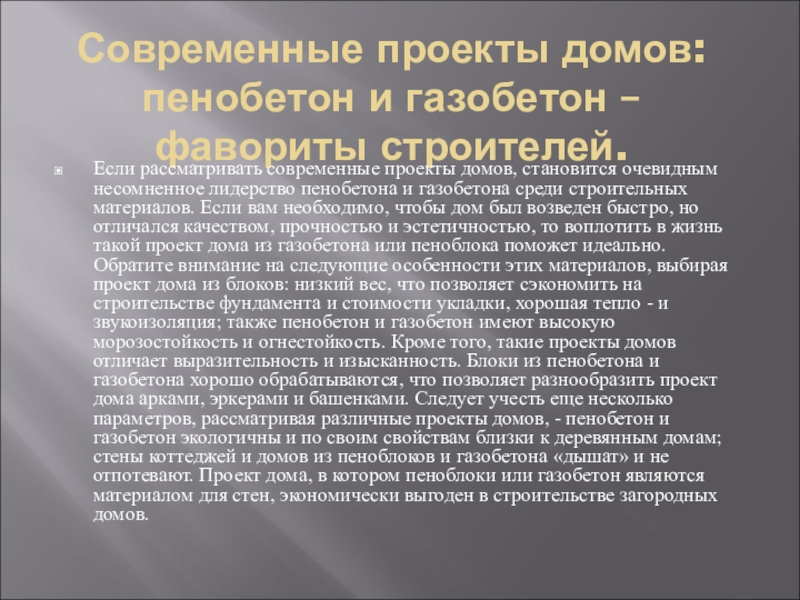 Слайд 10Современные проекты домов: пенобетон и газобетон – фавориты строителей.