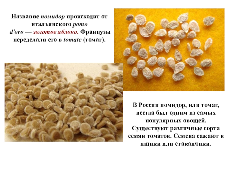Название помидор происходит от итальянского pomo d'oro — золотое яблоко. Французы переделали его в tomate (томат).