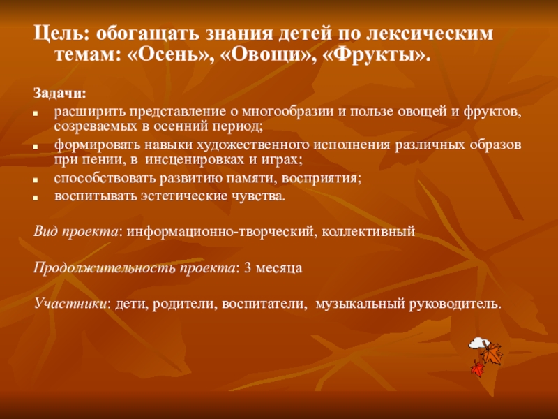 Уточнять и расширять активный словарь детей по теме « Осень»