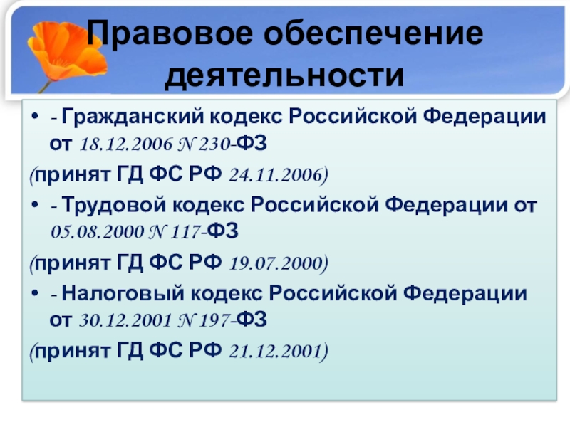 - Гражданский кодекс Российской Федерации от 18.12.2006 N 230-ФЗ