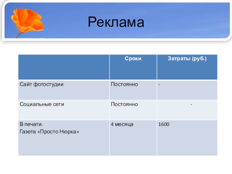 Определить эффективность работы фото-студии «Отражение» после ее создания.