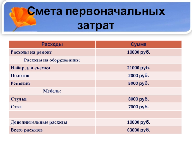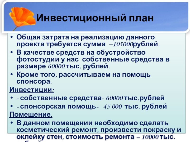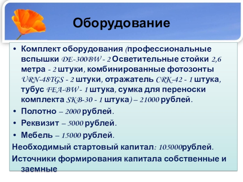 средств на обустройство фотостудии у нас собственные средства в размере 60000 тыс. рублей.