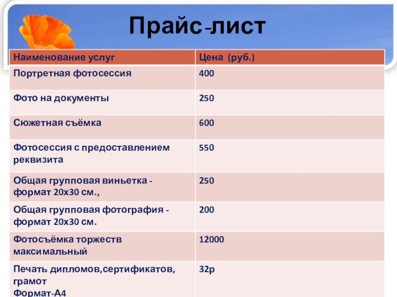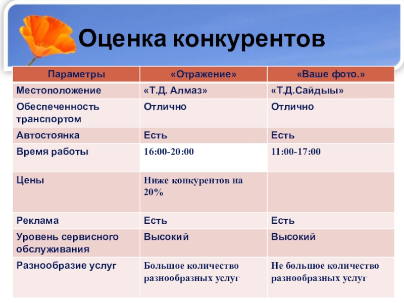 Определить перспективы фото-студии «Отражение» на рынке услуг.