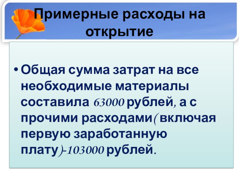 63000 рублей, а с прочими расходами( включая первую заработанную плату)-103000 рублей.