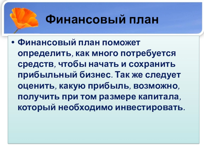 Финансовый план поможет определить, как много потребуется средств, чтобы начать
