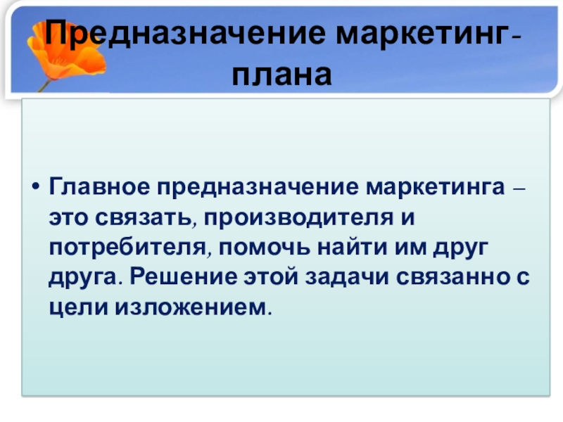 Главное предназначение маркетинга – это связать, производителя и потребителя, помочь