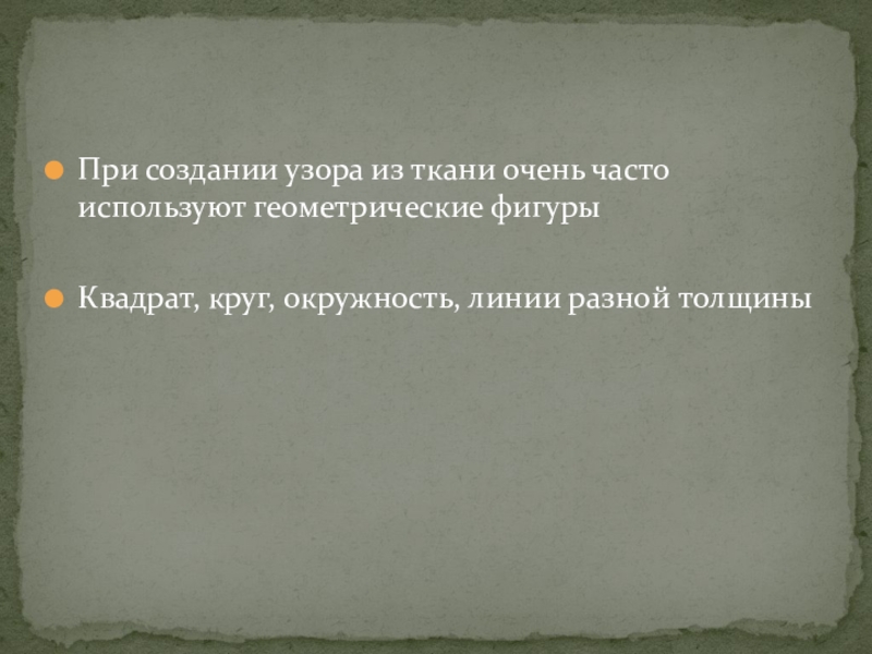 Слайд 8При создании узора из ткани очень часто используют геометрические фигуры