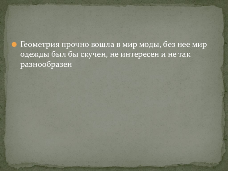 Слайд 14Геометрия прочно вошла в мир моды, без нее мир одежды был