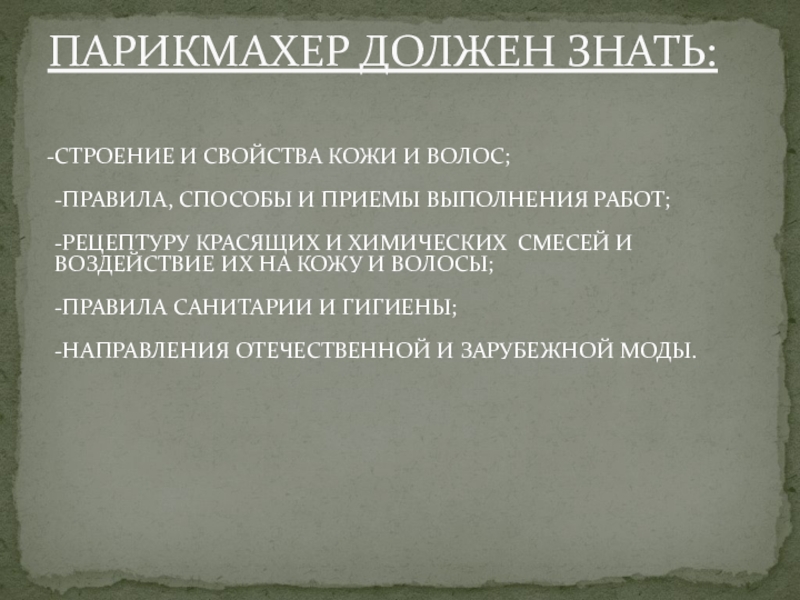 МДК 01.01. «Выполнение стрижек и укладок волос»