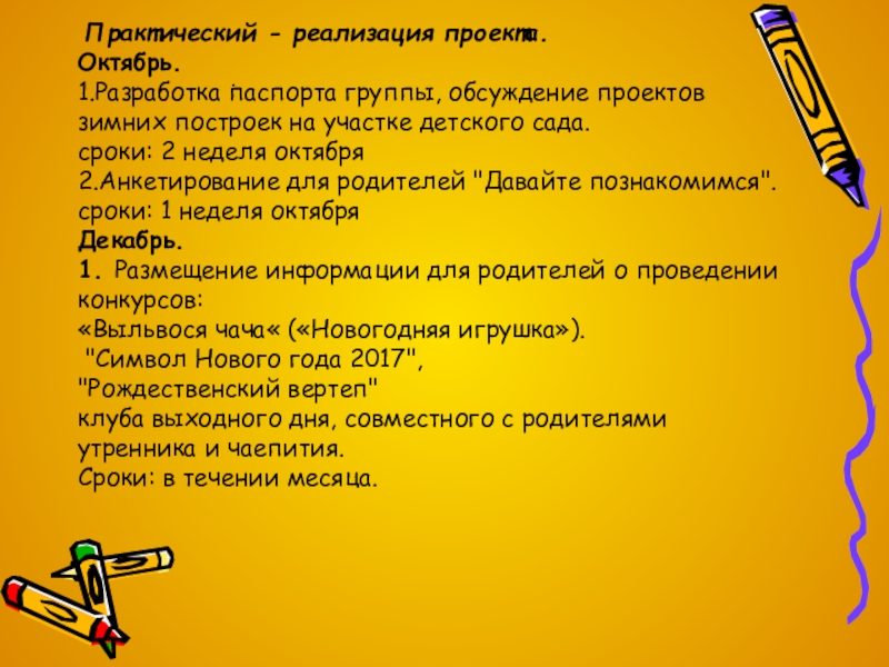 Срок реализации проекта: декабрь2016, январь 2017 года.