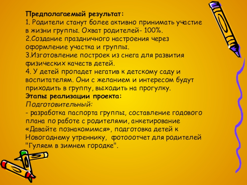 1. Родители станут более активно принимать участие в жизни группы.