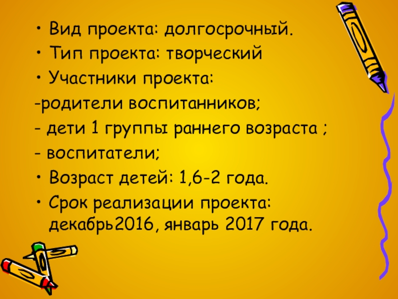 Слайд 2Вид проекта: долгосрочный.
