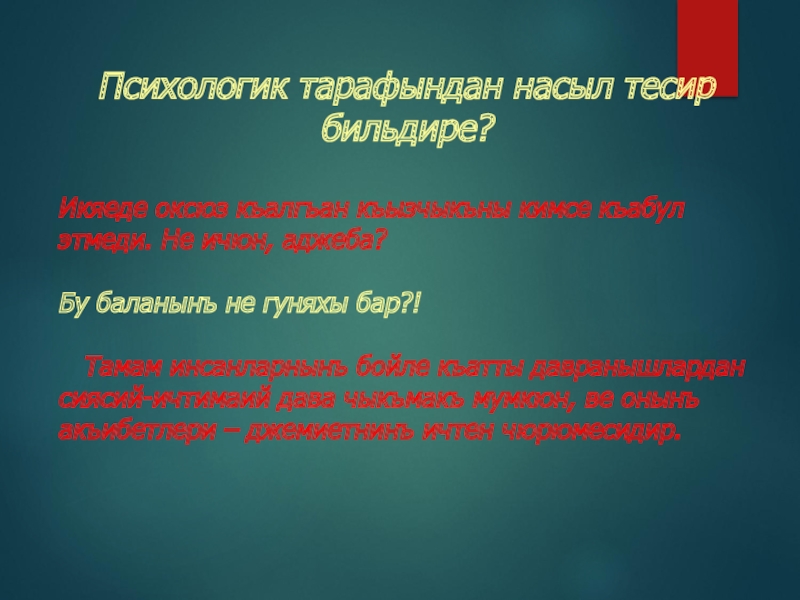 Слайд 18Психологик тарафындан насыл тесир бильдире?