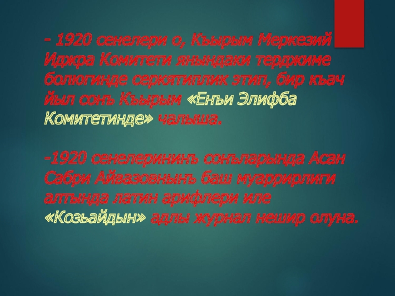 Слайд 8- 1920 сенелери о, Къырым Меркезий Иджра Комитети янындаки терджиме болюгинде