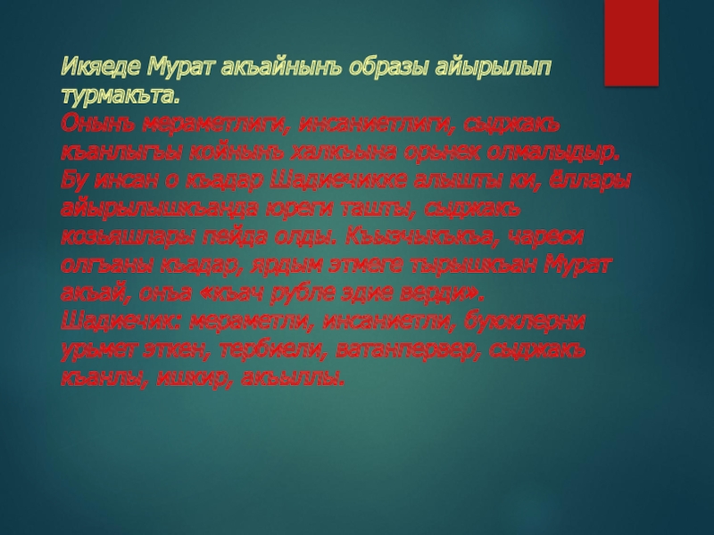 Слайд 17Икяеде Мурат акъайнынъ образы айырылып турмакъта.