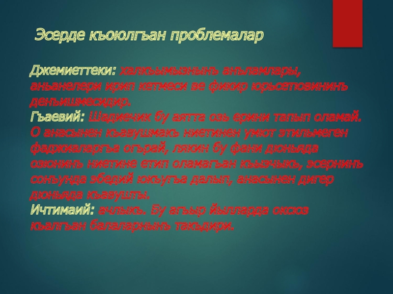 Слайд 14 Эсерде къоюлгъан проблемалар