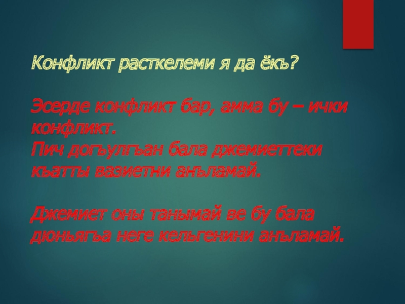 Слайд 22Конфликт расткелеми я да ёкъ?