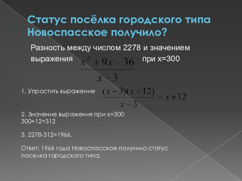Ответ: 1966 года Новоспасское получило статус поселка городского типа.