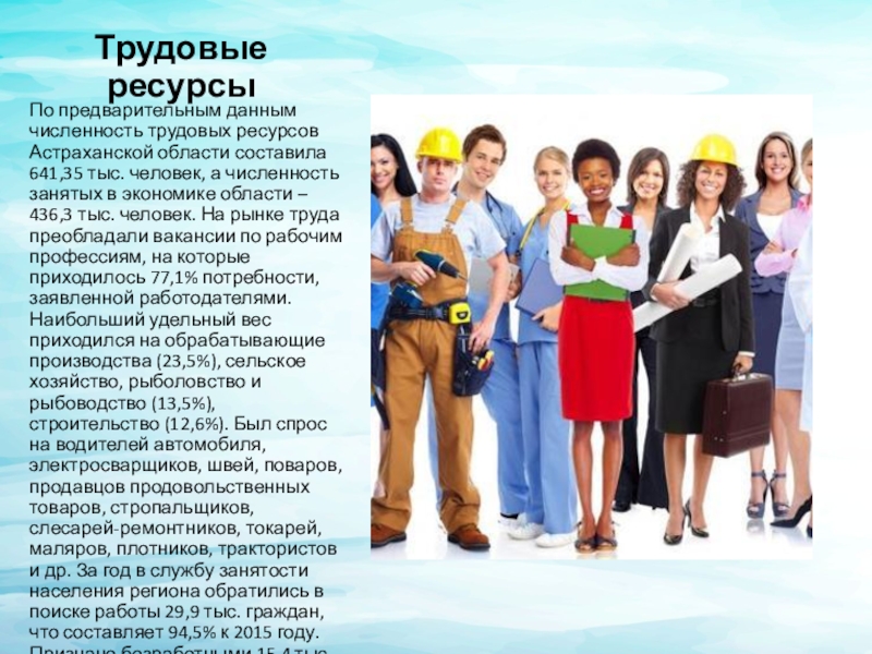 По предварительным данным численность трудовых ресурсов Астраханской области составила 641,35