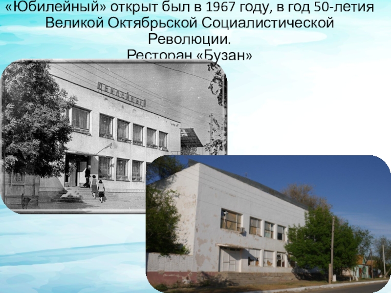 Слайд 13«Юбилейный» открыт был в 1967 году, в год 50-летия Великой Октябрьской