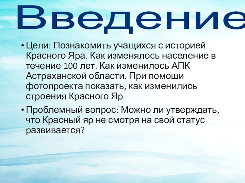 Цели: Познакомить учащихся с историей Красного Яра. Как изменялось население в