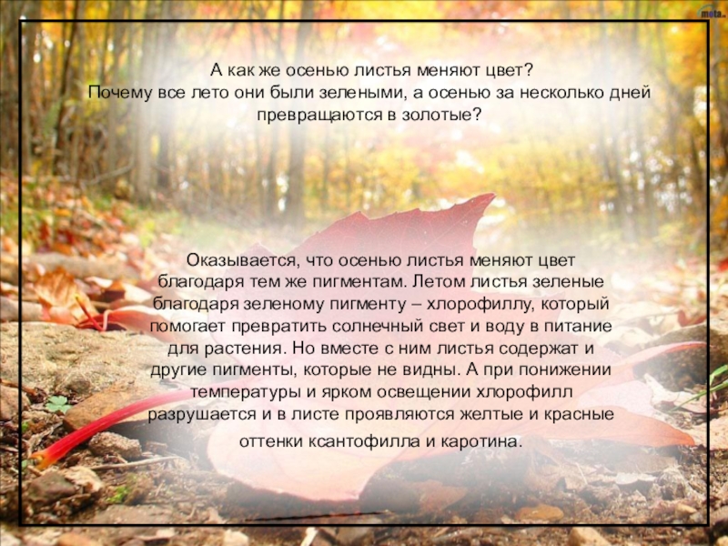 Почему все лето они были зелеными, а осенью за несколько дней превращаются в золотые?
