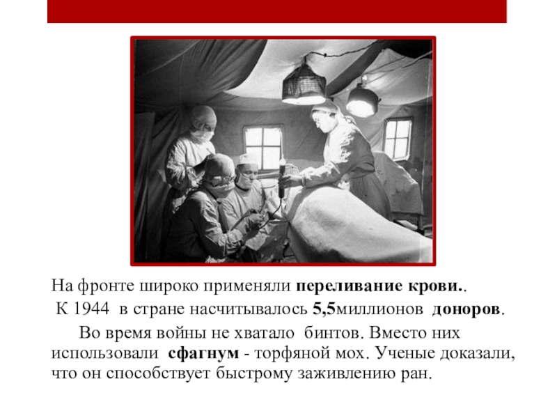 Слайд 43Спасая жизнь раненым, врачи и медсестры не отходили от операционных столов