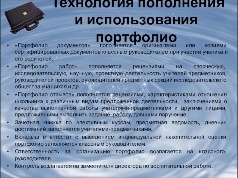 Классные руководители осуществляют контроль за наполняемостью и правильностью заполнения портфолио.