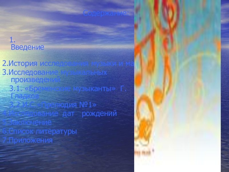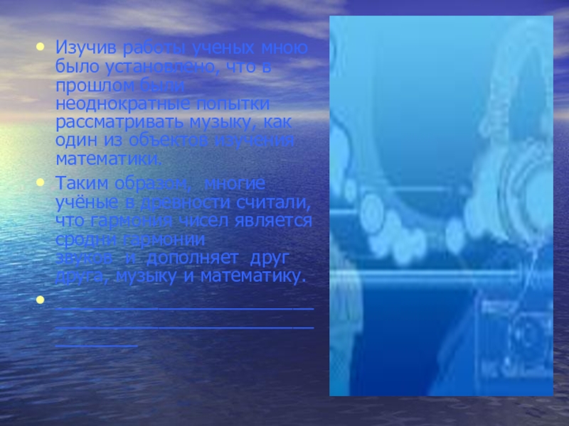 Слайд 102.История исследования связи музыки с математикой.