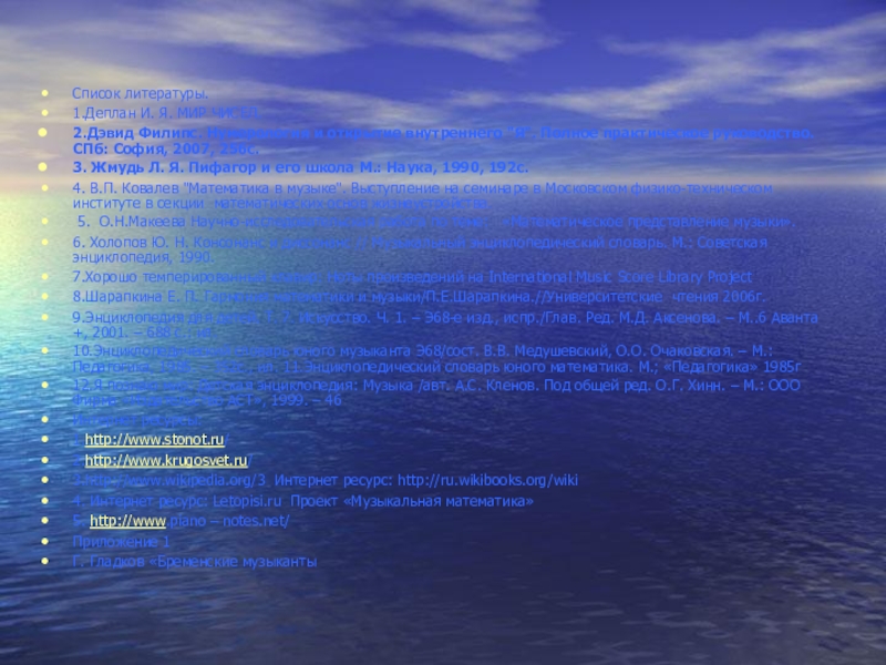 8.Шарапкина Е. П. Гармония математики и музыки/П.Е.Шарапкина.//Университетские чтения 2006г.