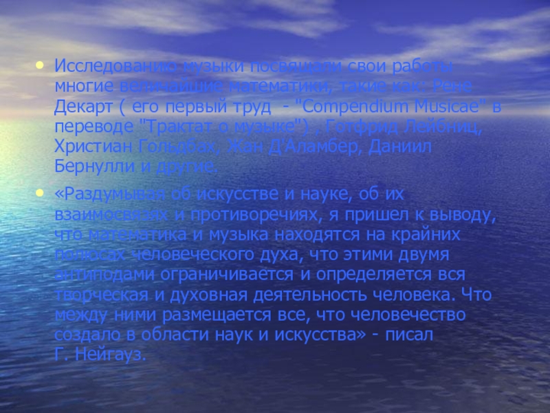 Слайд 15Исследованию музыки посвящали свои работы многие величайшие математики, такие как: Рене