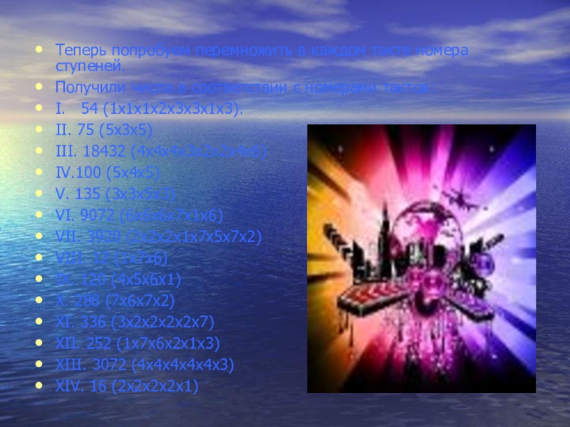 Слайд 20Теперь попробуем перемножить в каждом такте номера ступеней.