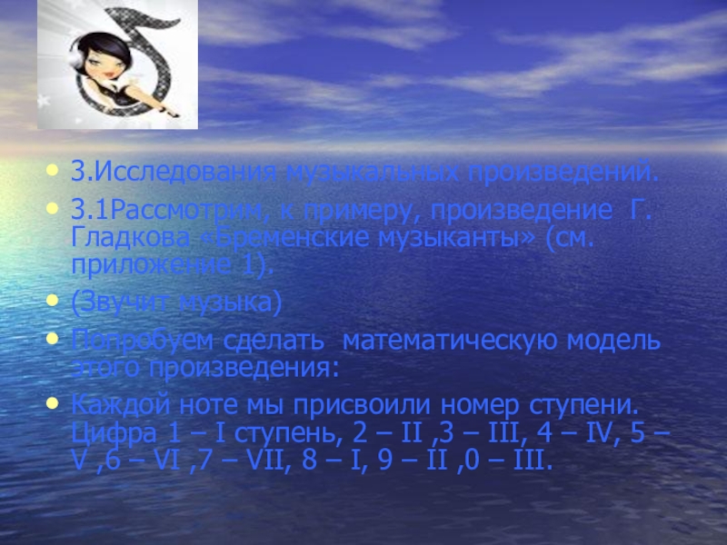 Слайд 6Тема моего исследования - «Музыка и математика в цифрах».