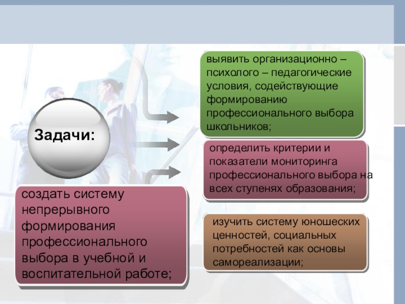 создать систему непрерывного формирования профессионального выбора в учебной и воспитательной работе;