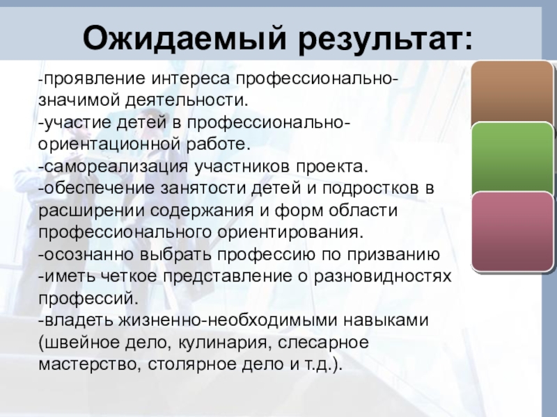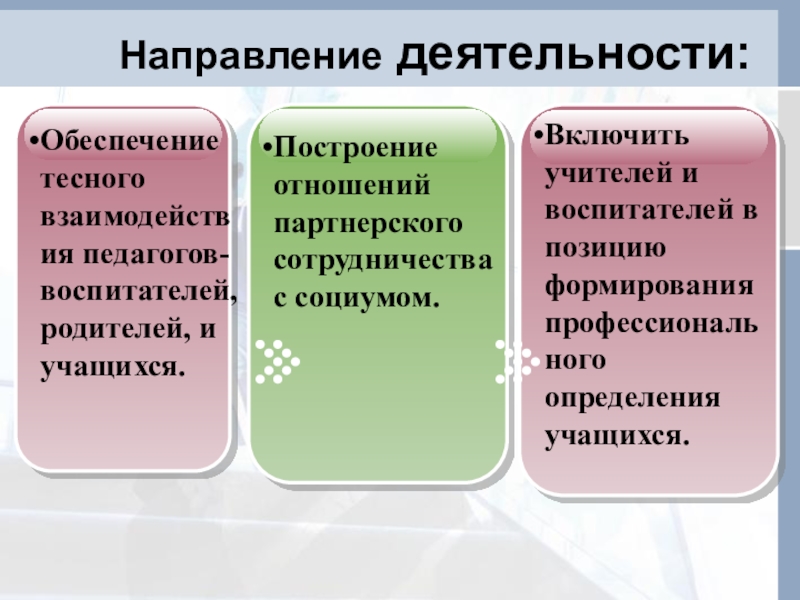 Включить учителей и воспитателей в позицию формирования профессионального определения учащихся.