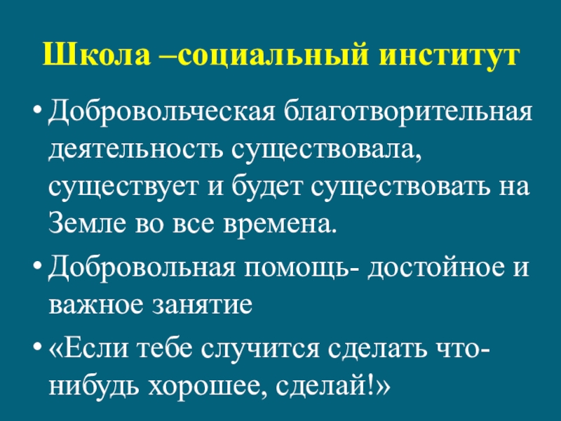 Добровольческая благотворительная деятельность существовала, существует и будет существовать на
